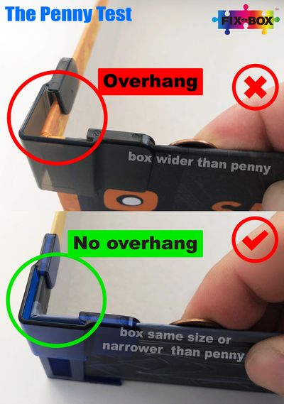 Press until the cardboard is fully inserted in the grooves. If there is overhang ie lid edge not fully inserted into the grooves, cardboard may be too thick. Refer 'Penny Test' below.